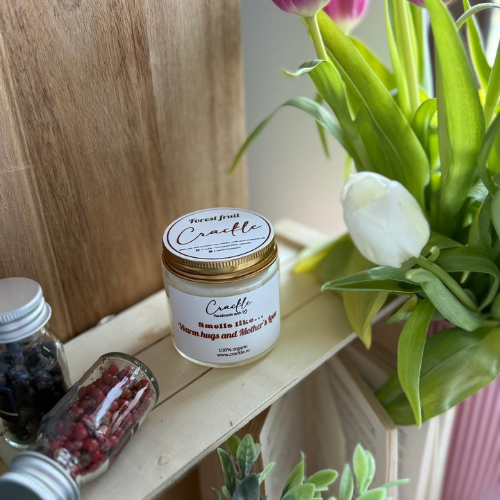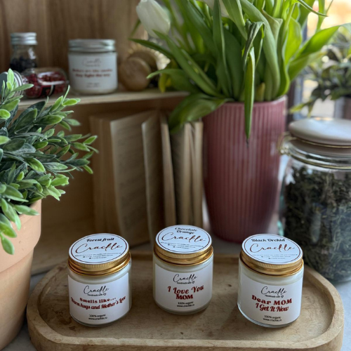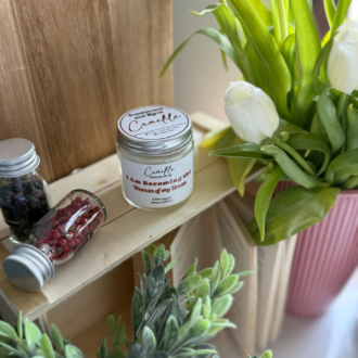 Aroma nu se selectează individual – ea este aleasă automat de noi, în funcție de citatul de pe etichetă, dimensiunea lumânării și stocul disponibil. Avem peste 20 de arome diferite, în special note de primăvară, atent alese pentru fiecare creație.